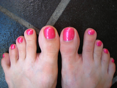 I usually get my nails done in a deep red, but I chose pink today. It looked a lot darker in the bottle, but came out really candy – which is perfect for a cheery start to what I hope to be an amazing 2008.
