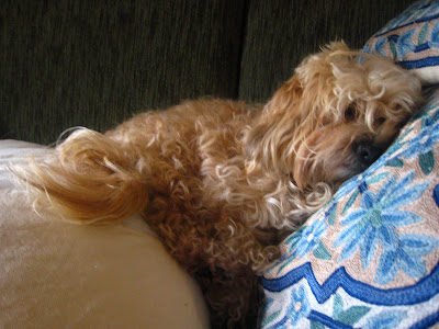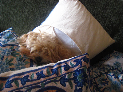 On the couch, Buffy likes to wedge herself under the pillows. Yawn!